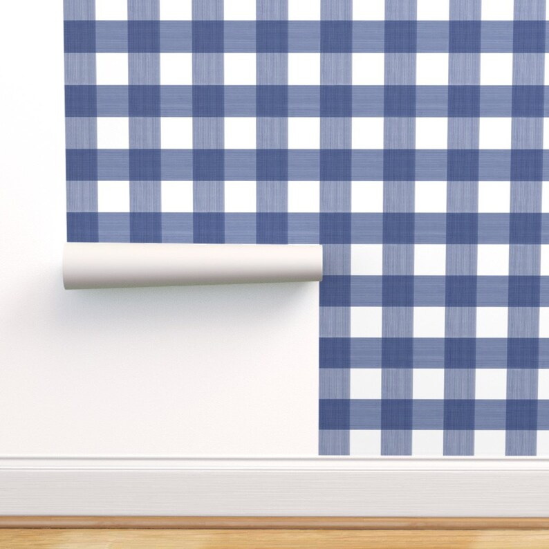 Customize any space or decor with buffalo plaid blue peel and stick wallpaper by roommates.